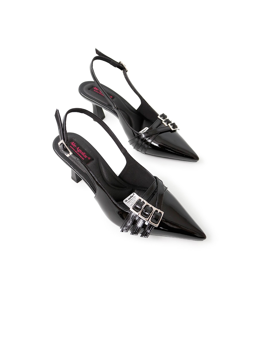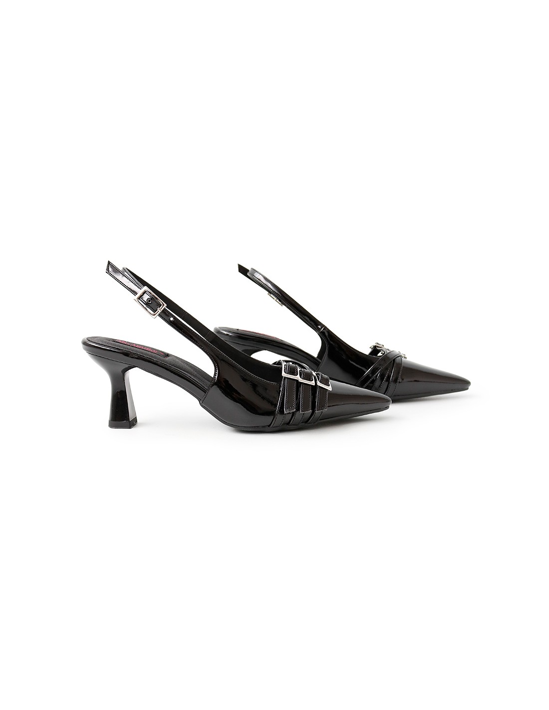 Kitten heels 5.5cm destalonados con correa ajustable. Su capellada es de terciopelo victoria, dándole un aspecto vanguardista pero a la vez elegante.
