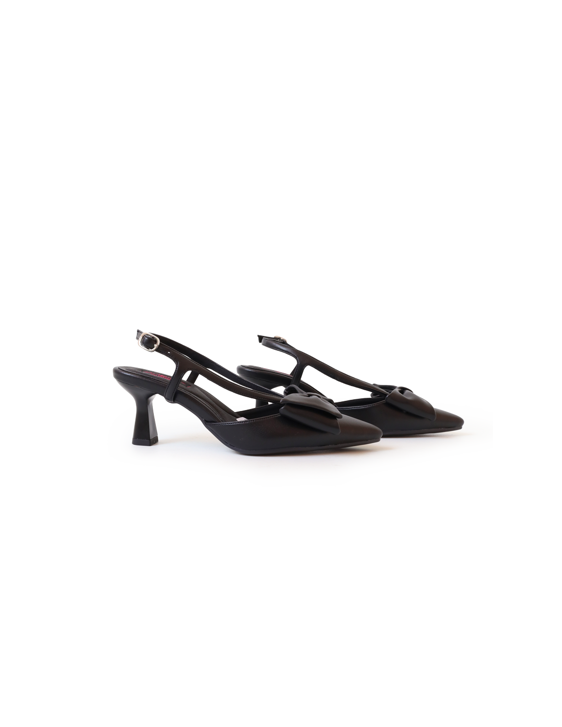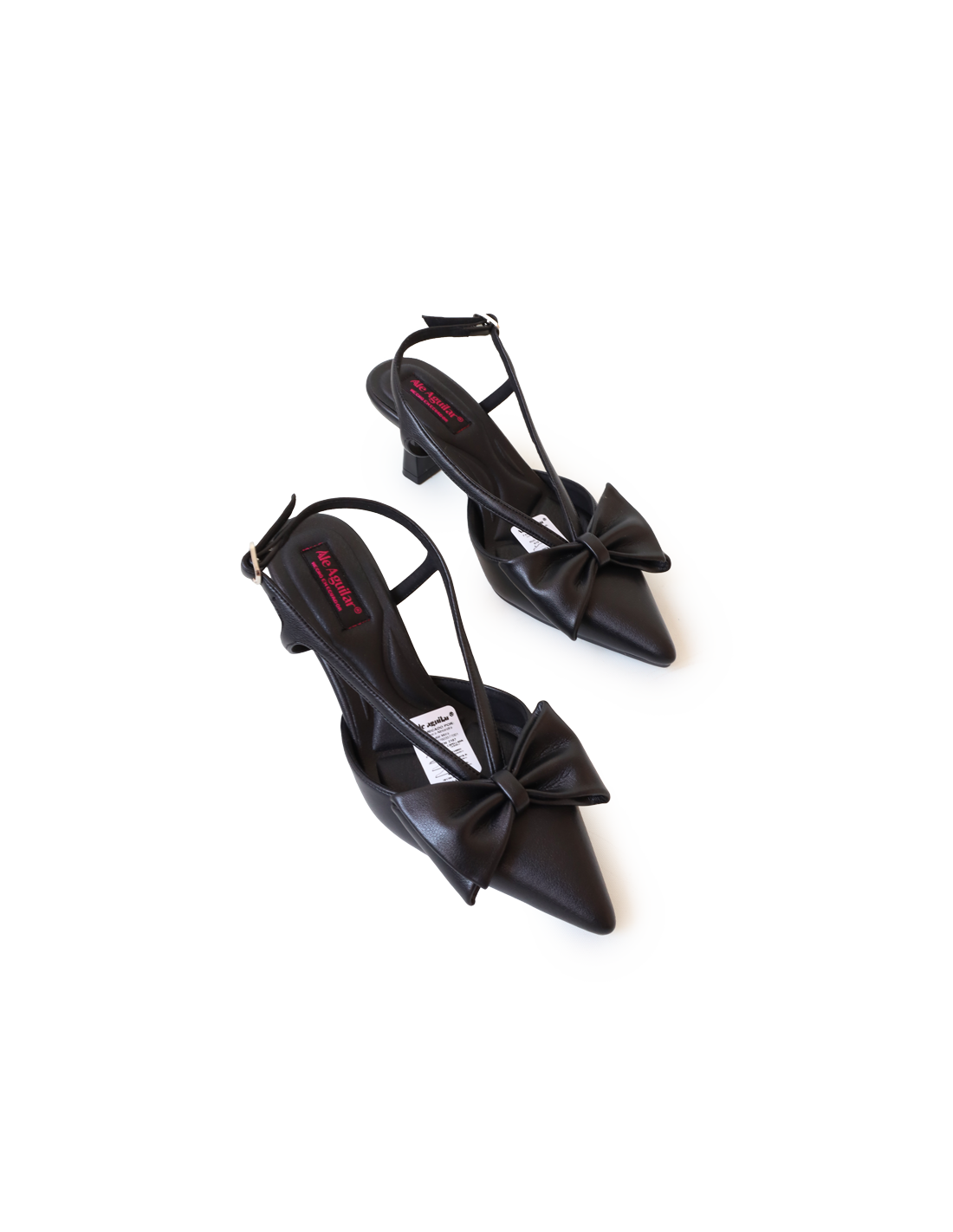 Kitten heels de 5.5 cm en cuero con lazo al frente: elegancia clásica y femenina para un estilo sofisticado.