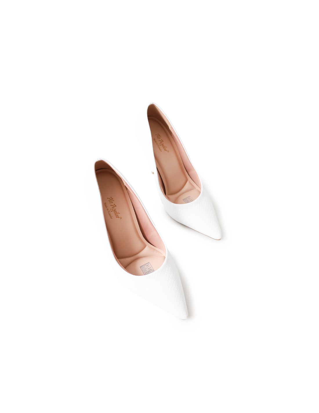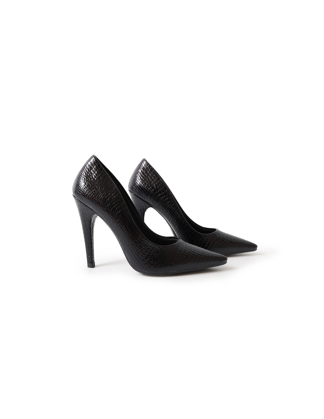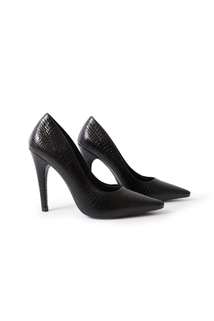 Stiletto de 9.5 cm en material labrado en blanco y negro: contraste elegante y sofisticado para un look atemporal.